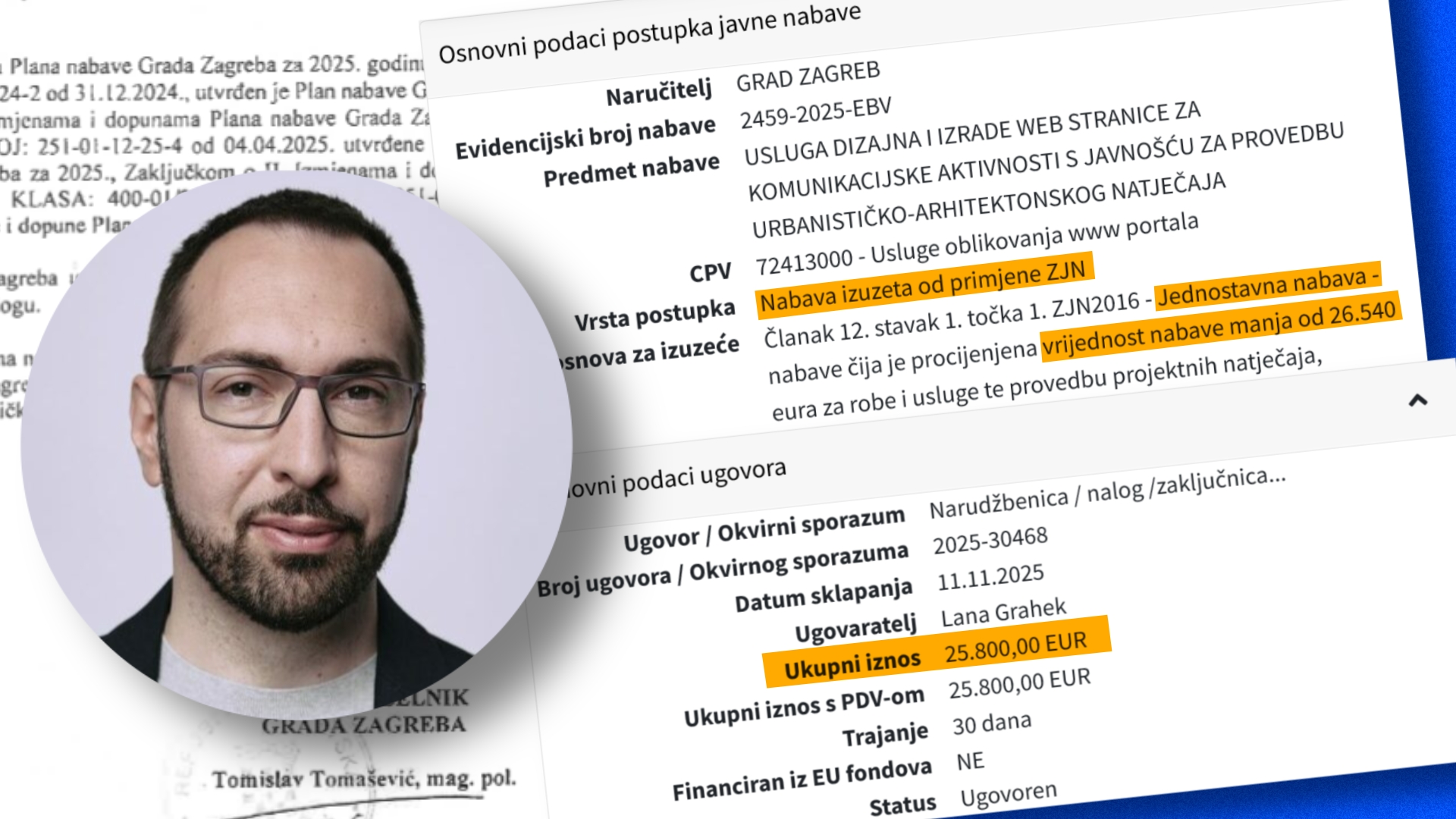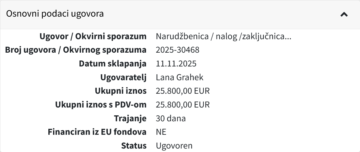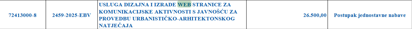Ono što je još zanimljivije je da je tim dokumentom predviđeno da se za spornu web stranicu potroši točno 26.500,00 eura što je samo 40 eura ispod praga obvezne javne nabave.