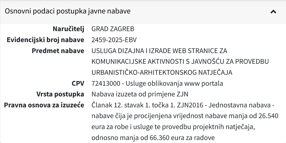 Kod trošenja javnog novca kriterij ne može biti samo da stranica „funkcionira“, nego da je trošak razmjeran isporučenom. Ako se sudi prema onome što građani mogu vidjeti, ovaj web više nalikuje jednostavnom informativnom servisu nego projektu koji opravdava iznos od gotovo 26.000 eura.